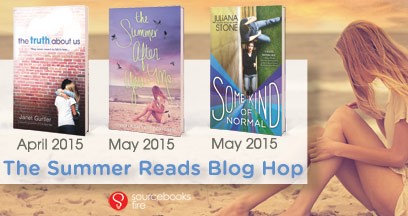 It’s the Summer Reads Blog Hop! All week long Sourcebooks pub sisters Janet Gurtler, Juliana Stone, and I will be answering questions about our favorite summer songs, books, moments, and more on these fantastic blogs! Check it out! THE SUMMER AFTER YOU AND ME debuts one month from today. Help me count down the days by entering my Countdown To Summer Giveaway. Just click the link on the right.